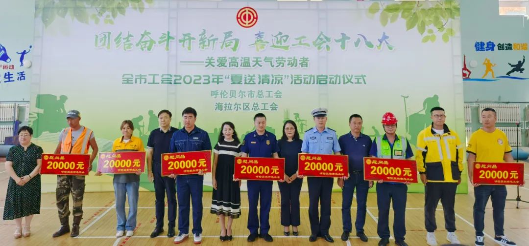 启动仪式上,呼伦贝尔市总工会为电力、建筑、环卫、消防、交通警察、新就业形态劳动者等各单位发放20000元慰问品,并感谢他们长期以来不畏酷暑,坚守岗位所做出的贡献,对他们为全市经济发展所付出的艰辛努力表示亲切的慰问。