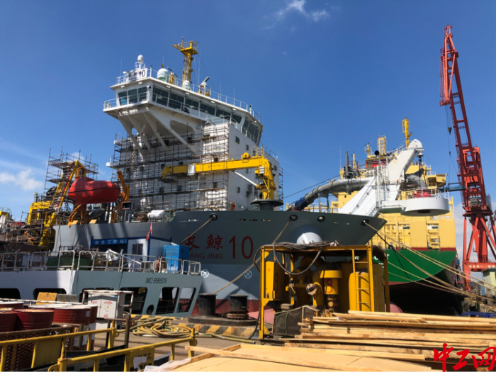 12日上午,记者团走进地处粤港澳大湾区几何中心的中船龙穴造船基地,站在龙穴山上俯瞰占地302万平方米的中国船舶集团旗下广船国际造船厂区,船坞和码头呈现出一片繁忙的生产景象。