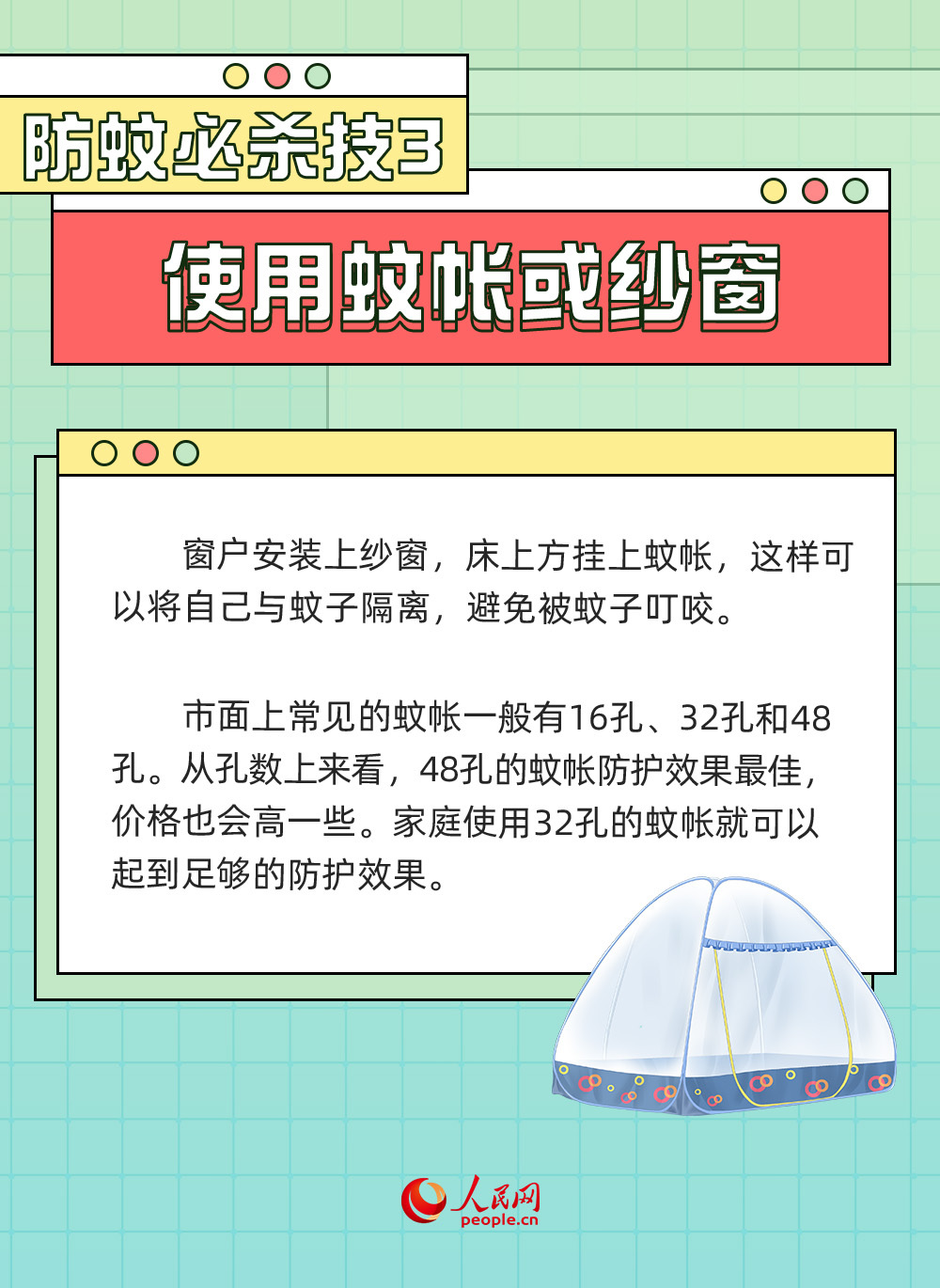 夏天到了,天气闷热,又到了与蚊子“相爱相杀”的季节。夏秋季节是虫媒传染病的高发季节。怎样才能安全有效地防蚊驱蚊,预防虫媒传染病呢?就此人民网记者采访了武汉大学人民医院(湖北省人民医院)皮肤性病科副主任医师史赢,为您带来5大防蚊“必杀技”,快用起来吧!