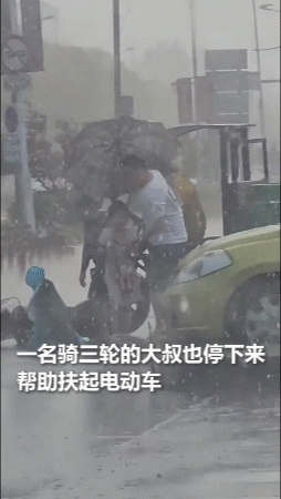 风雨中仗义帮扶
