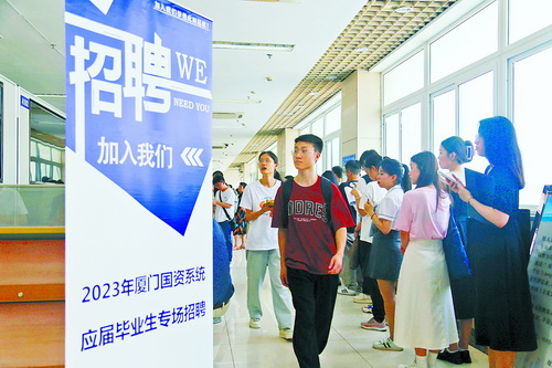 为更好地贯彻落实6月30日全省高校毕业生就业创业工作推进视频会议暨全市高校毕业生就业创业推进会会议精神,厦门市国资委组织增设多场专场招聘会。7月6日,市国资委在集美大学2023届离校未就业毕业生校园招聘会暨实习生招聘会上开设国资国企专区,组织建发集团、路桥集团、市政集团以及刚组建成立的特区建投集团等国企参与,现场所提供的就业岗位可吸纳就业人数近300人,不少展位前排起长队。