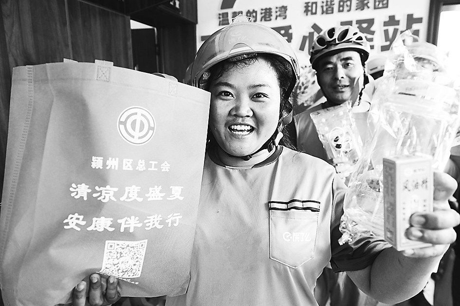 “自加入工会以来,从平台到线下,冬送温暖、夏送清凉、助贫扶困等各色活动,都让我和工友们感受到组织的温暖和依靠。特别是现在随处可去的工会驿站,方便了我们户外劳动者,让我们感受到无微不至的关心,让我们对工会组织更多了一份信任和依赖。”骑手蔡媛媛领到物品高兴地说。