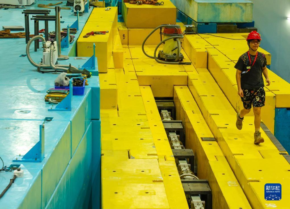 正在维护和建设中的中国散裂中子源中子谱仪。中子谱仪是探测物质微观结构和动力学行为的实验终端(7月18日摄)。