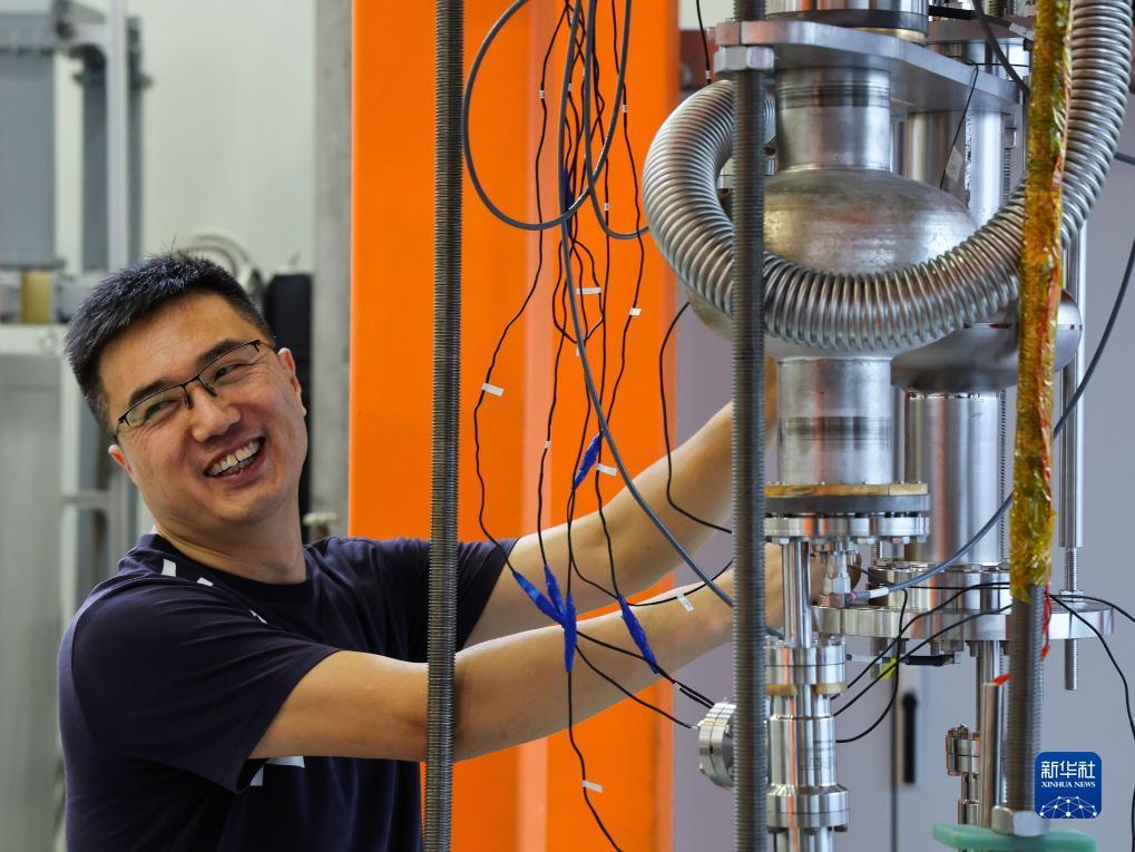 科研人员在中国散裂中子源加速器射频技术实验室维护设备(7月18日摄)。