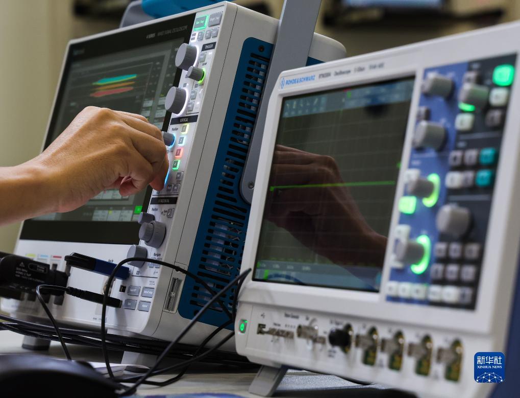 科研人员在中国散裂中子源加速器射频技术实验室操控仪表(7月18日摄)。