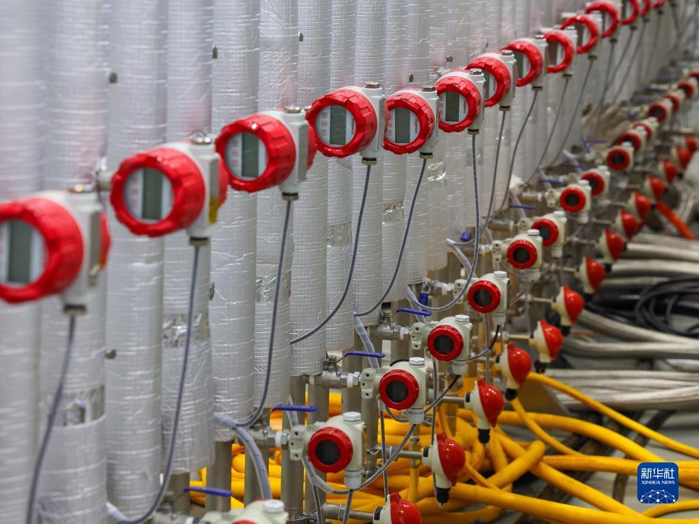 中国散裂中子源加速器射频技术实验室的管线设备(7月18日摄)。