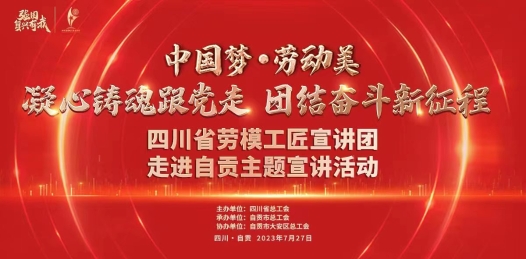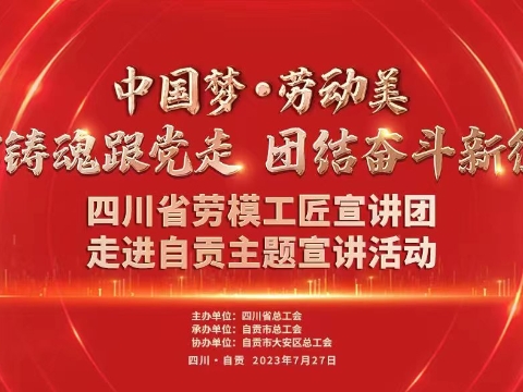 直播回顾丨“中国梦·劳动美——凝心铸魂跟党走 团结奋斗新征程”四川省劳模工匠宣讲团走进自贡主题宣讲活动 劳动创造幸福,实干成就伟业!为深入学习宣传贯彻党的二十大精神和省委十二届三次全会精神,开展学习贯彻习近平新时代中国特色社会主义思想主题教育,大力弘扬劳模精神、劳动精神、工匠精神。7月27日上午9:30,由四川省总工会主办、自贡市总工会承办、自贡市大安区总工会协办的“中国梦·劳动美——凝心铸魂跟党走 团结奋斗新征程”四川省劳模工匠宣讲团走进自贡主题宣讲活动如期举办。