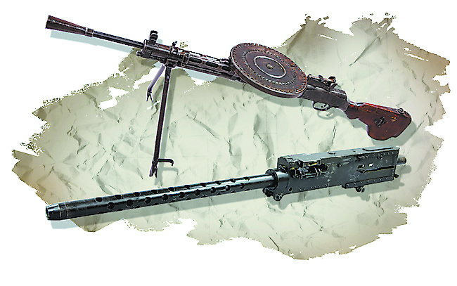 在中国人民革命军事博物馆中,收藏了两挺承载着厚重记忆的机枪。一挺是“一级战斗英雄”孙占元使用的苏联造捷格加廖夫DP式7.62毫米口径轻机枪,另一挺是“一级战斗英雄”、志愿军空军飞行员张积慧击落美“空中王牌”驾驶员乔治·安德鲁·戴维斯所驾驶的F-86战斗机后,缴获的航用机枪。这两挺机枪,前者是抗美援朝战场上志愿军英勇对敌作战的武器,后者是志愿军不怕牺牲、力克强敌的历史见证。