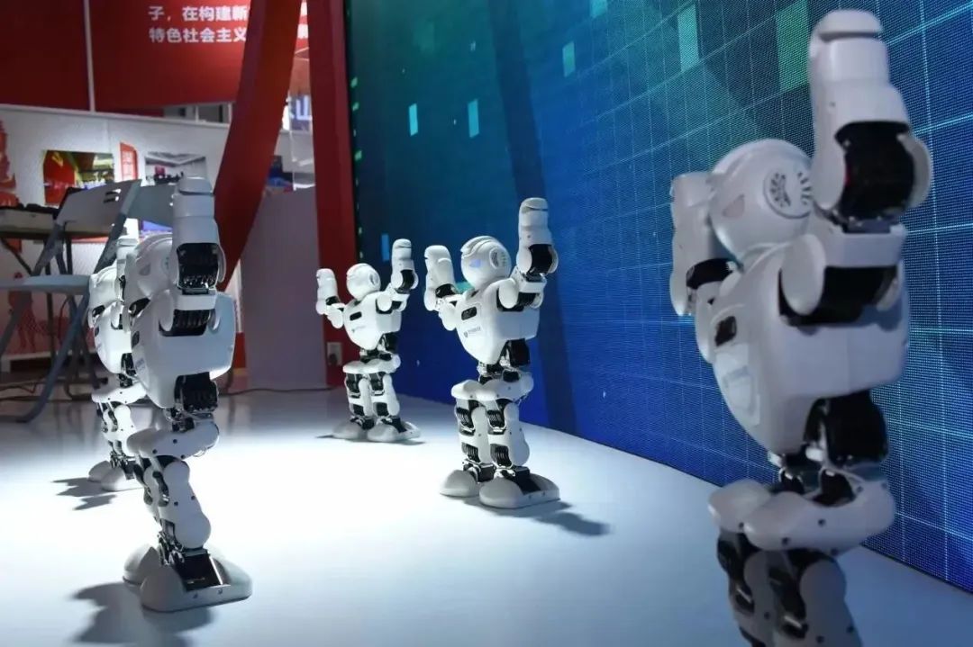 超“萌”人形机器人“斗舞”,零距离感受高科技魅力。株洲数字工业创新中心的优必选阿尔法机器人舞蹈秀吸引了不少观展者驻足。