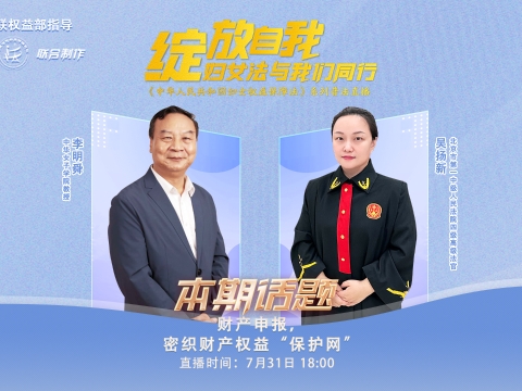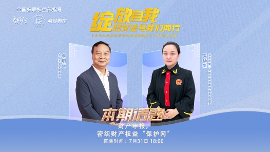 直播回顾丨《中华人民共和国妇女权益保障法》系列普法直播——财产申报,密织财产权益“保护网” 嫁出去的女儿可以参与娘家的财产分配吗?全职妈妈在离婚时应该如何保护自己的财产权?夫妻共同财产“财产申报制度”是什么?女性财产权受到侵害时,有哪些途径寻求帮助呢?7月31日18:00,关注女性财产权益保护那些事儿,中工网首页、微博同步直播!