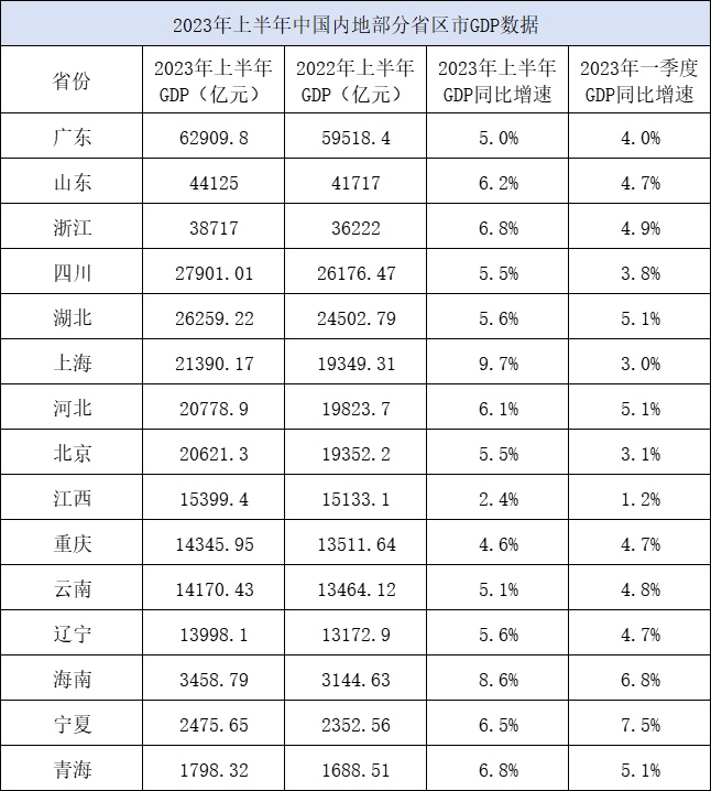 自国家统计局7月17日发布2023年上半年主要经济数据以来,各省份近日陆续公布本地数据。