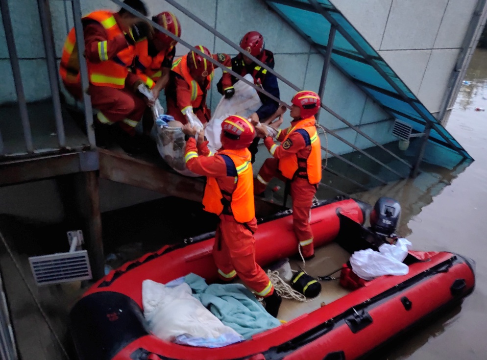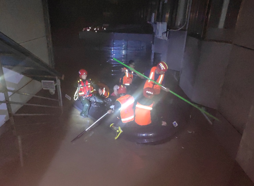 根据现场情况,消防救援人员立即做好安全防护措施,利用橡皮艇进行转运。截至21时57分,被困人员已全部救出。