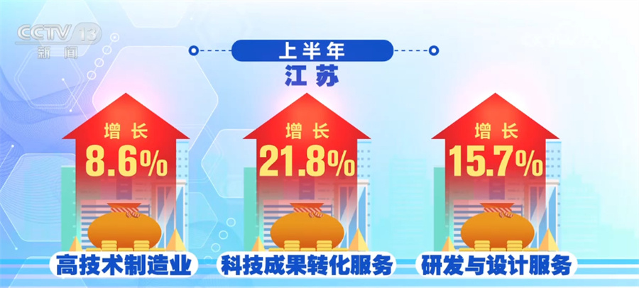 江苏、浙江、安徽把创新当做制造业升级的着力点。上半年,江苏高技术制造业增长8.6%,科技成果转化服务、研发与设计服务分别增长21.8%和15.7%。浙江上半年,科学研究和技术服务业投资增长52.2%。规模以上工业中,新产品产值率已经达到41.4%,并在持续提高。安徽上半年装备制造业增加值增长了15.3%,汽车产业增长42.6%,光伏产业增长了一倍。