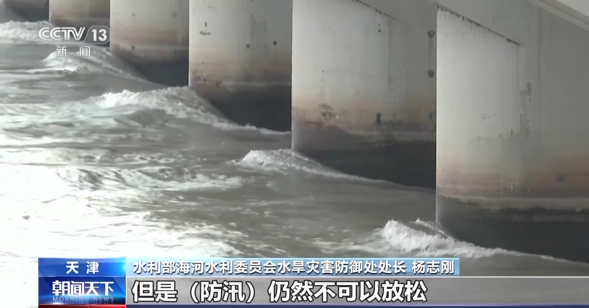 水利部海河水利委员会水旱灾害防御处处长 杨志刚:目前海河流域洪水已经进入消退期,但是防汛仍然不可以放松,要加强蓄滞洪区人员的管控,要及时清除河道内的行洪障碍,加强巡查防守,发现隐患及时消除,切实保障行洪安全。