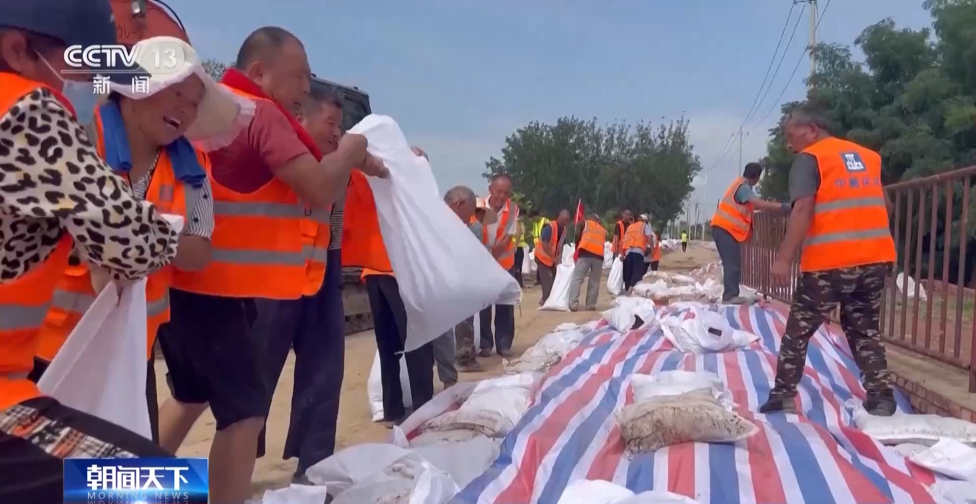 总台央视记者 张丛婧:我现在在天津市静海区台头镇的大清河,抢险救援人员正在紧急加固堤坝。确保洪水流经的时候,大坝能经受住考验。