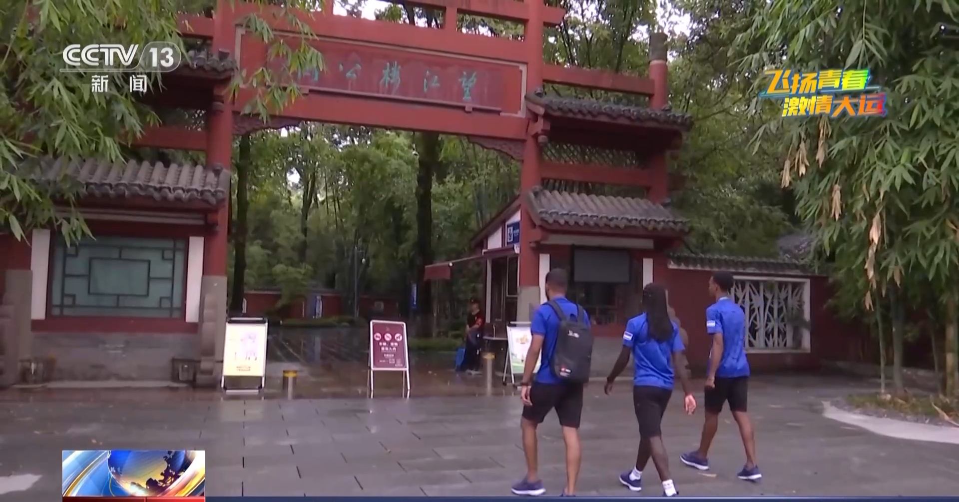 比赛之余,在大运村里体验中国太极,漫步望江亭公园感受中国传统建筑亭台楼阁的韵味。他们说在学校就对中国文化非常向往,到了成都后,想要了解更多。