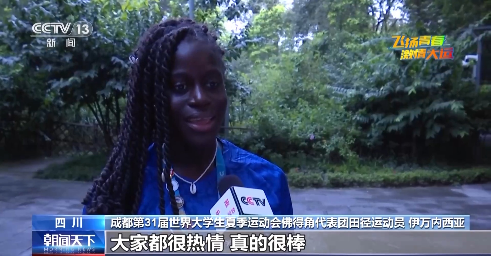 成都第31届世界大学生夏季运动会佛得角代表团田径运动员 伊万内西亚:大家都很热情,真的很棒。