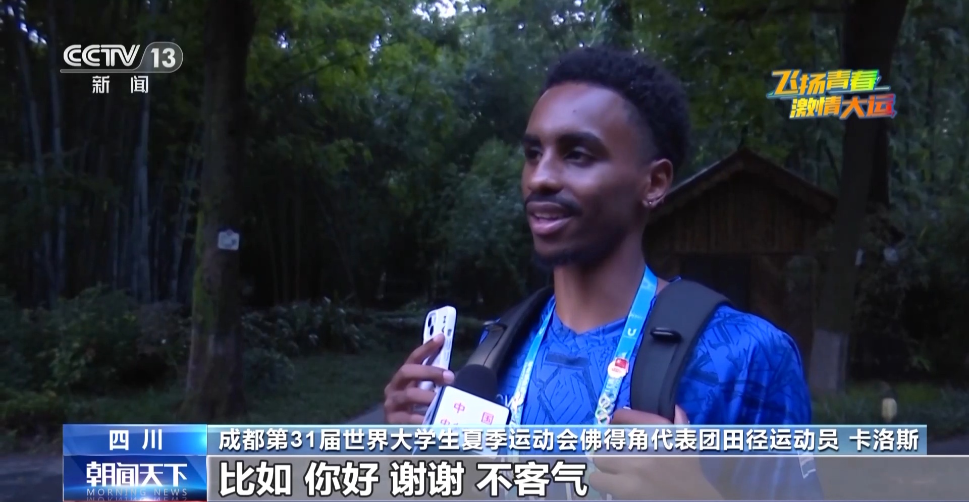 成都第31届世界大学生夏季运动会佛得角代表团田径运动员 卡洛斯:我觉得像回家了,我交了很多朋友,现在我能说几个词,比如,你好,谢谢,不客气。我希望能学会更多中国话和中国字。