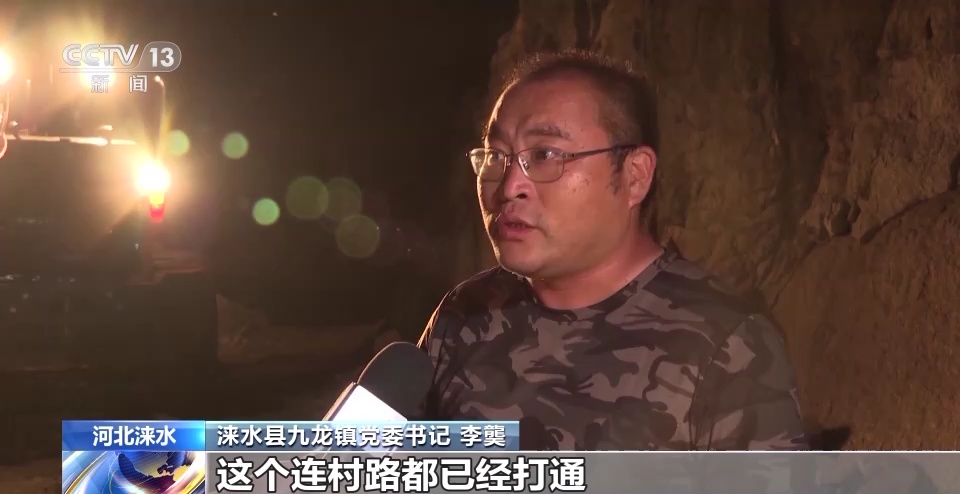 总台记者 王帅南:我现在在保定涞水县与张家口涿鹿县的交界处,受到前几日的连续强降雨和山洪的影响,省道241线被冲毁了500多米长的路段,在8月3日当地组织了大型的车辆设备进行抢修,目前还在连夜抢修中。