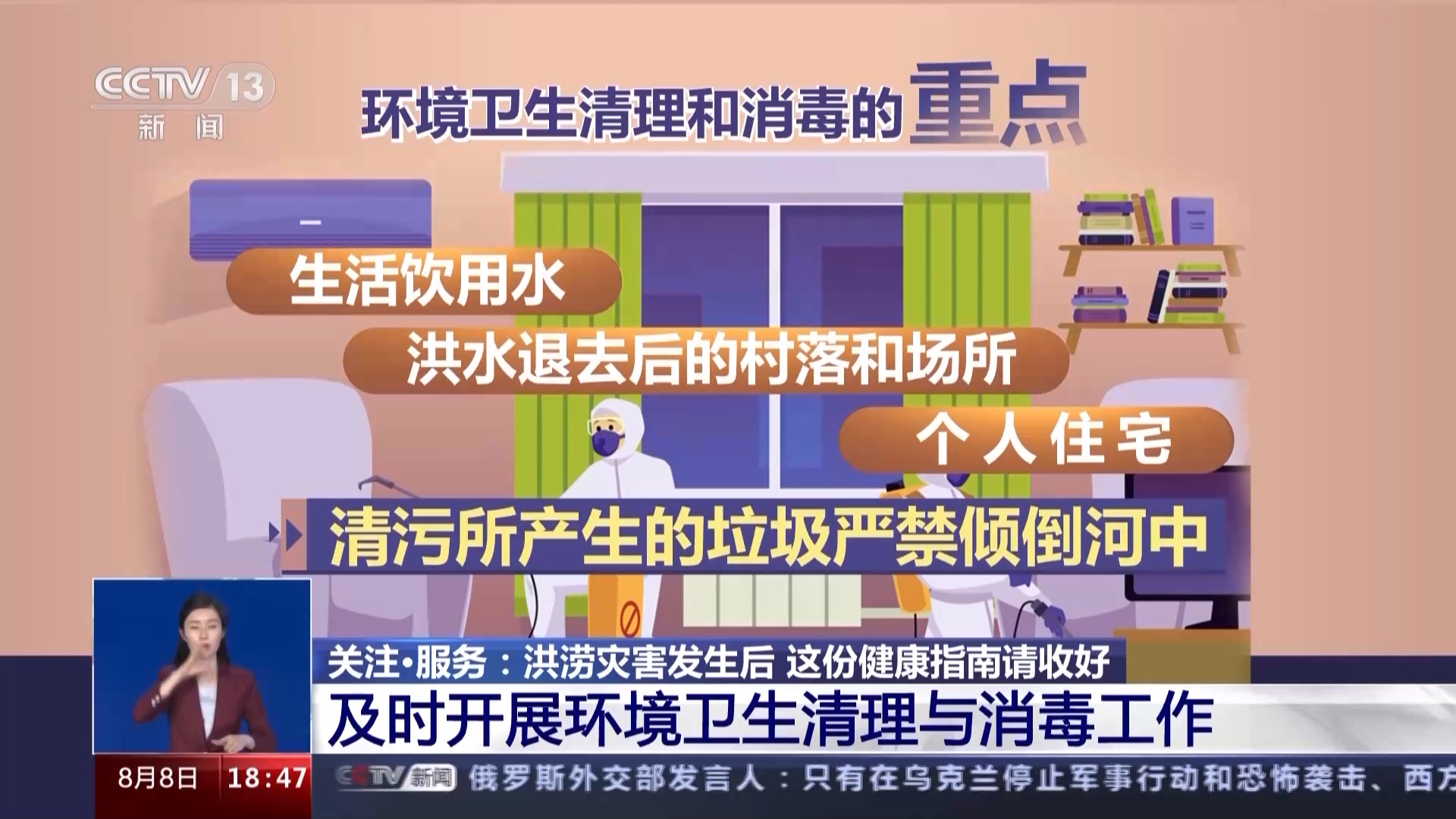 洪涝灾害发生后,除了要注意饮用水安全,中国疾控中心专家还提醒,要根据当地灾情和传染病发生风险,及时开展环境卫生清理与消毒工作。