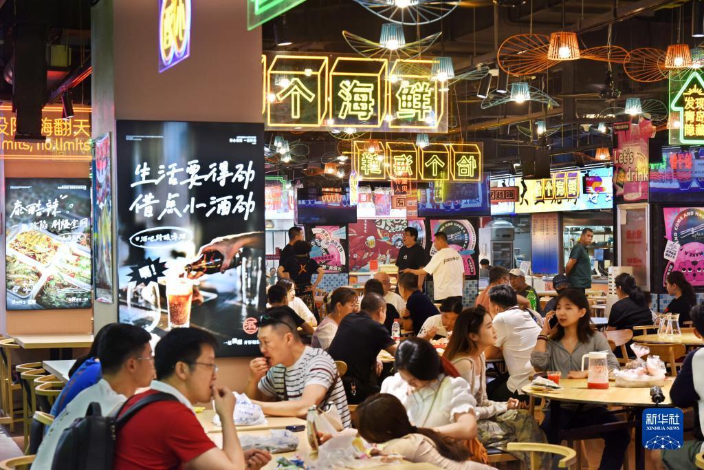 8月7日,顾客在青岛市市南区浮山所市集就餐区用餐。
