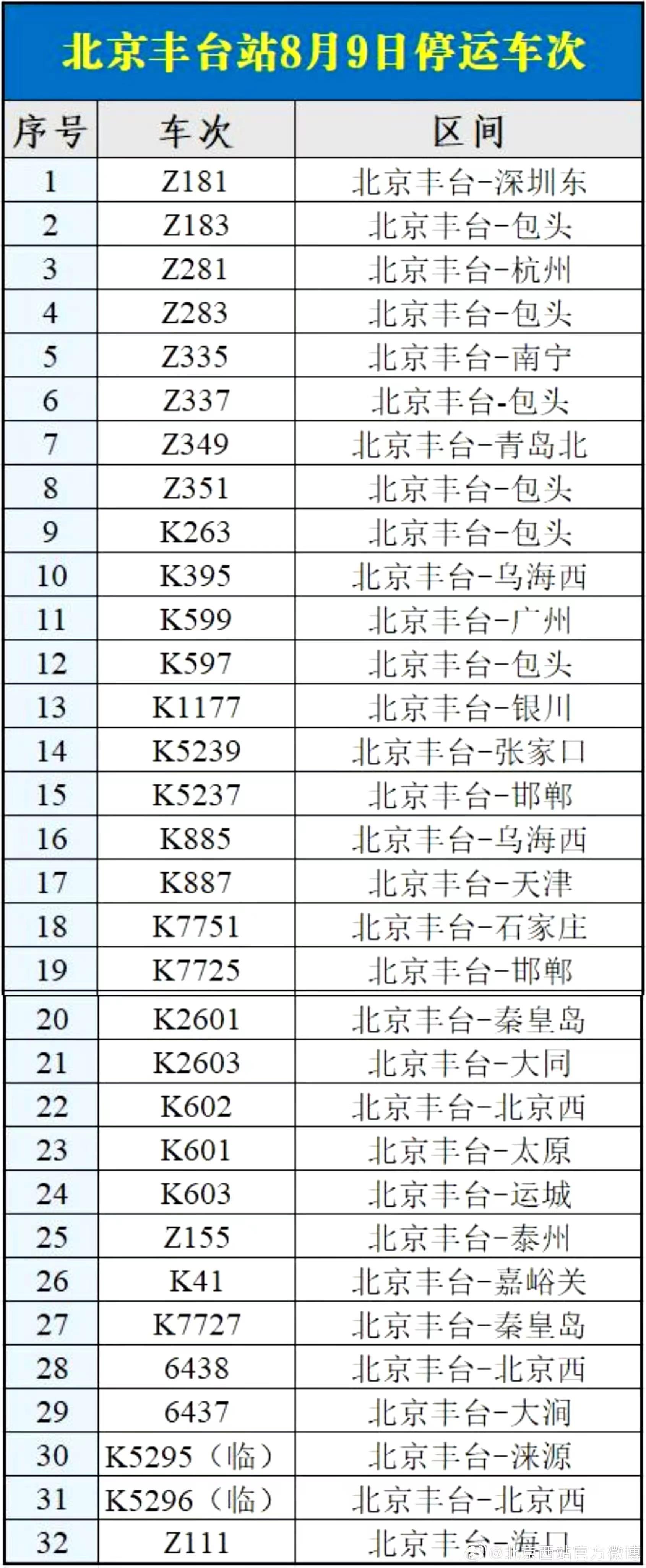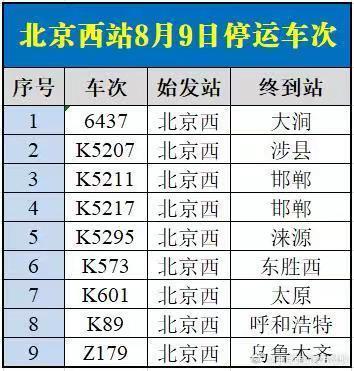 原标题:8月9日北京西站、北京丰台站部分列车停运