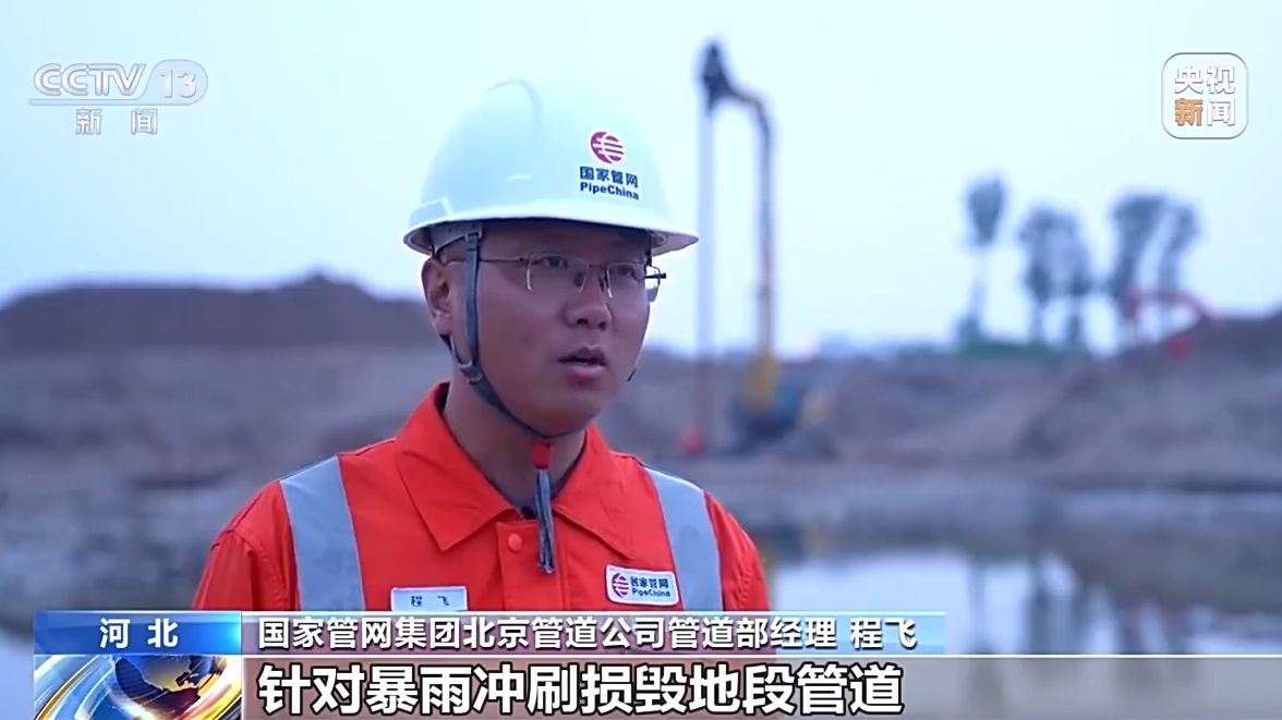国家管网集团北京管道公司管道部经理 程飞:针对暴雨冲刷损毁地段管道,我们及时采取围堰、填埋、支撑等保护和修复措施,对站场、阀室进行清淤和故障排查。截至目前,已修复河北、天津、北京等地水毁大型管道35处。