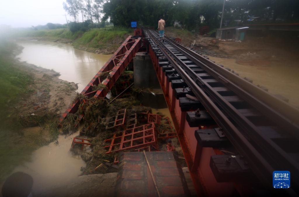 8月8日,在孟加拉国吉大港,铁路被洪水冲毁。