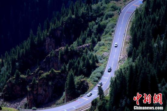 北起克拉玛依市独山子区,南至阿克苏地区库车市的独库公路,被称为纵贯天山脊梁的景观大道。图为独库公路两旁云杉耸立。