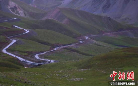 独库公路全长561公里,一半路段海拔在2000米以上。受天山山区冬季降雪、结冰等自然因素影响,一般每年十一月初到次年五六月实行交通管制,封闭期长达8个月。图为下雨天,蜿蜒的独库公路上车辆往来不绝。