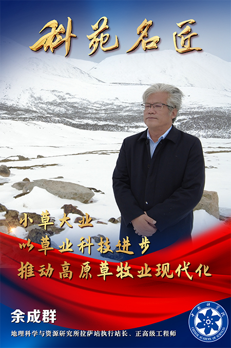 余成群在藏已三十五年,长期活跃在世界屋脊上的生命禁区里、人迹罕至处,探索高原草业科学的奥秘。无论走到哪里,关注点总在田间旷野的牧草上,经常自诩为“高原农民”。在他眼中,生态草牧业工作不仅是国家生态安全屏障建设和高原现代农业发展的重要内容,更是西藏农牧民稳定增收、农牧业发展战略调整和乡村振兴的迫切需要。(中国科学院工会供稿)