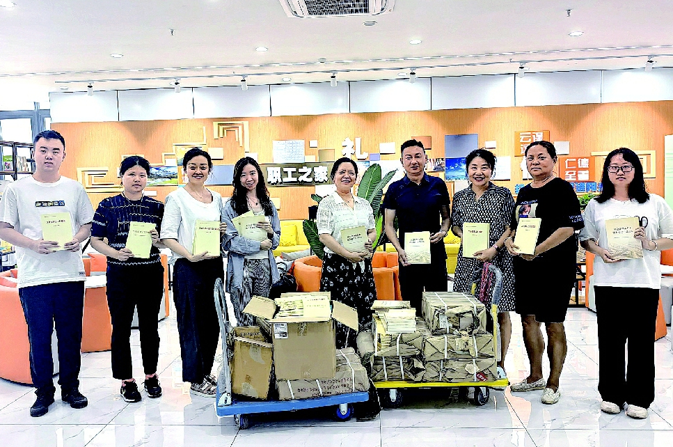 四川省总工会第十蹲点工作组联合省总干校为园区职工之家送技能培训书籍。