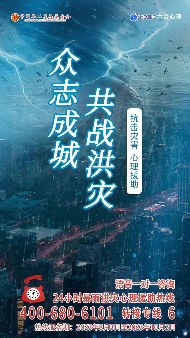 8月4日,紧急开通暴雨洪灾24小时心理援助公益热线,帮助受灾职工群众和救援人员减少恐慌情绪,预防严重心理应激障碍和创伤后应激障碍发生,保障受灾职工群众身心健康。