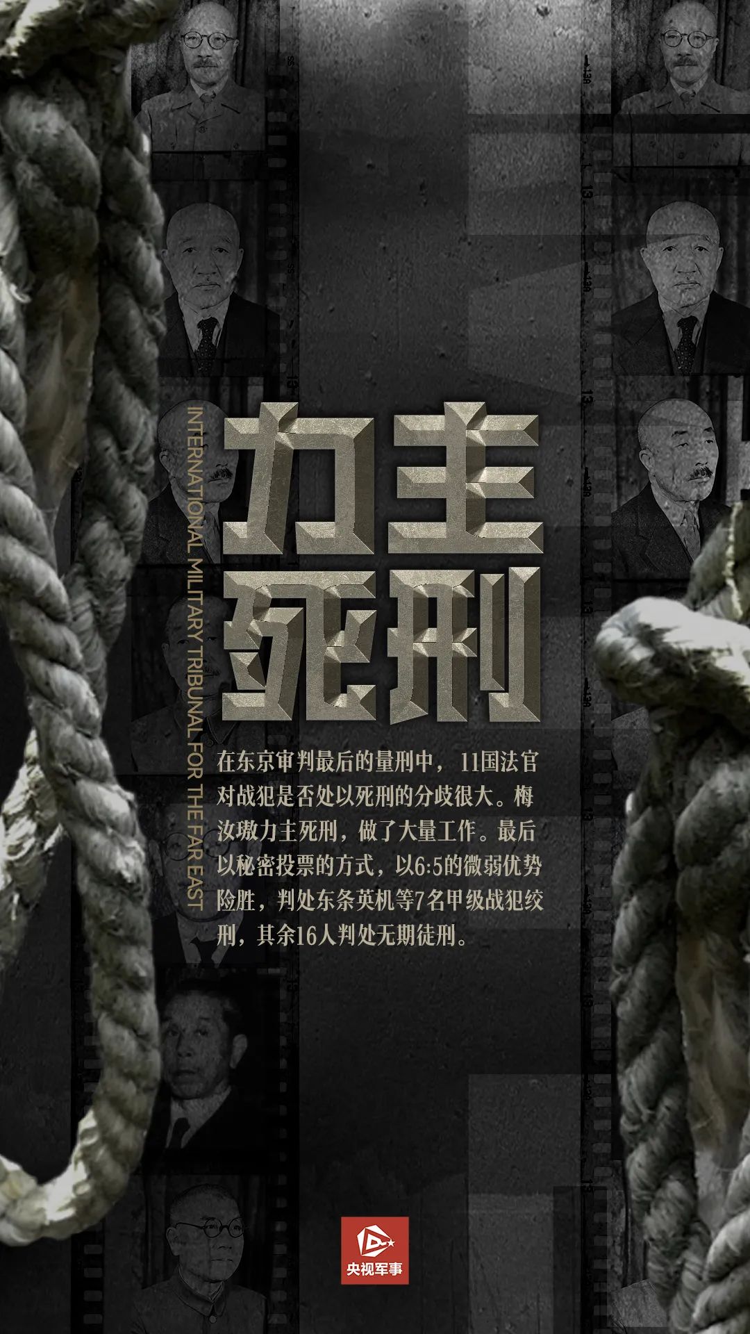 日本战败投降后,远东国际军事法庭在日本东京对第二次世界大战中日本首要甲级战犯进行国际审判,史称东京审判。