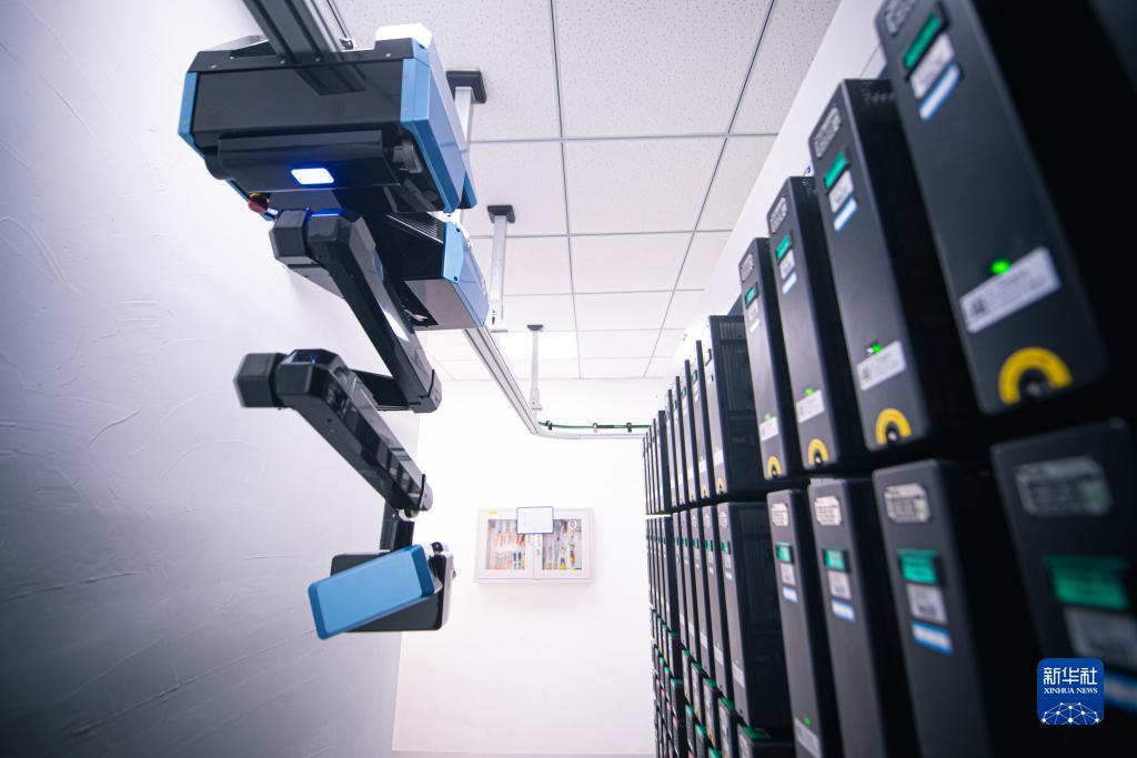 8月17日,自动巡检机器人在杭台高铁中继3站机房内工作。新华社记者 江汉 摄