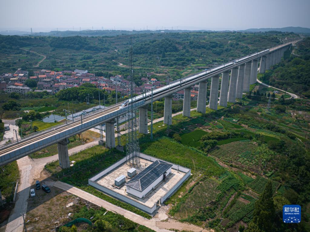 这是8月17日拍摄的位于嵊州的杭台高铁中继3站(无人机照片)。新华社记者 江汉 摄