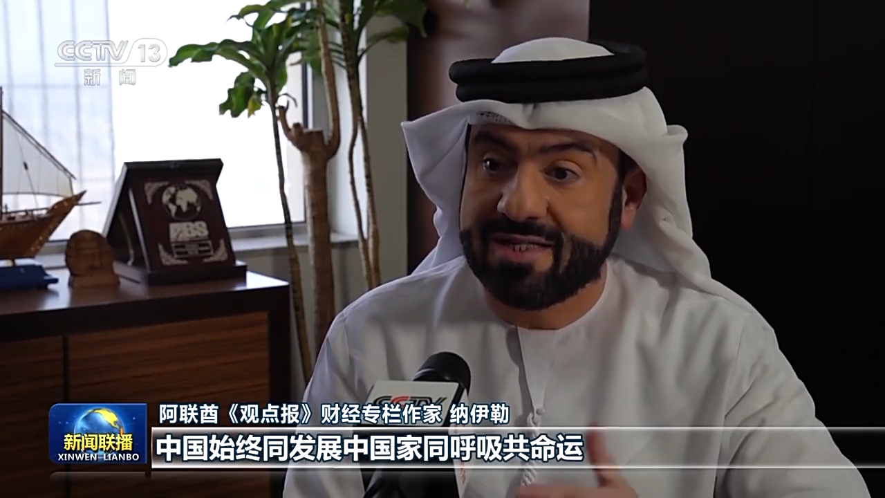 阿联酋《观点报》财经专栏作家 纳伊勒:中国国家主席习近平表示,中国始终同发展中国家同呼吸共命运,助力发展中国家实现经济社会发展,全球发展倡议就致力于推动实现共同繁荣,此次六个新成员国加入后,金砖国家更能代表新兴市场国家和发展中国家。