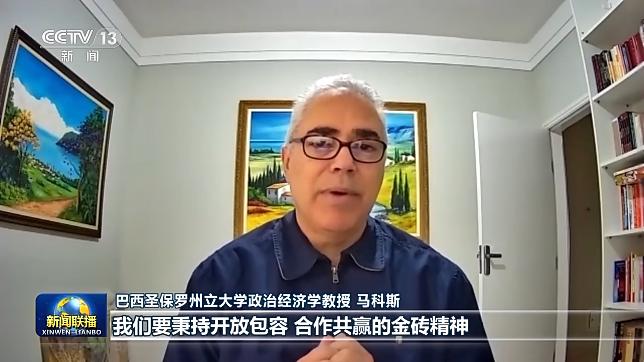 巴西圣保罗州立大学政治经济学教授 马科斯:我认为,习近平主席提到我们要秉持开放包容、合作共赢的金砖精神,让更多国家加入到金砖大家庭,表达了这对国际秩序至关重要的观点,金砖扩员值得重视,金砖的开放包容可以使其成为捍卫世界和平与发展,捍卫多极化的平台。