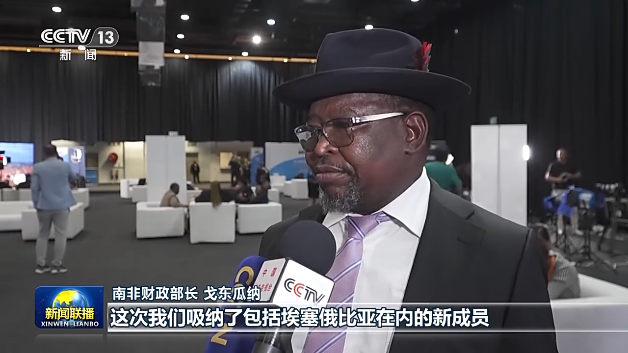 南非财政部长 戈东瓜纳:这次我们吸纳了包括埃塞俄比亚在内的新成员,金砖国家间的合作令我们更有力量,非洲国家间展开贸易的制约因素之一是基础设施,中国一直在为非洲的基础设施建设提供帮助,我们要加强与中国的对话。