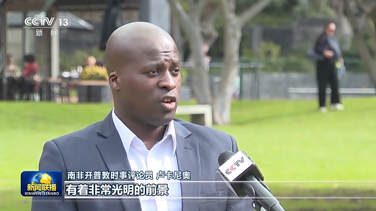 南非开普敦时事评论员 卢卡尼奥:南非和中国在经济等不同领域的合作有着非常光明的前景,中国非常重视非洲大陆,中国与非洲的合作以互利共赢为基础,并强调将立足中非合作论坛等平台,加强同非洲发展战略对接,习主席为未来中非团结合作指明了方向。