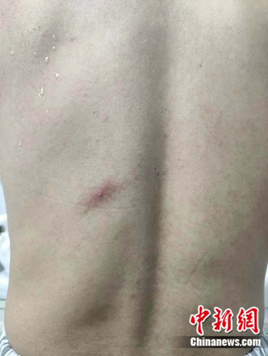 孙凯(化名)背部的猴痘印迹。受访者供图