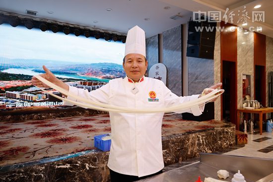 韩玉龙展示拉面技艺。中国经济网记者 李凡摄