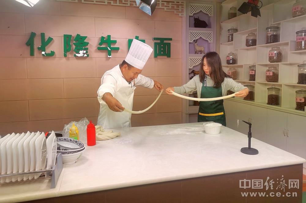韩玉龙教授记者做拉面。中国经济网记者 李凡摄。