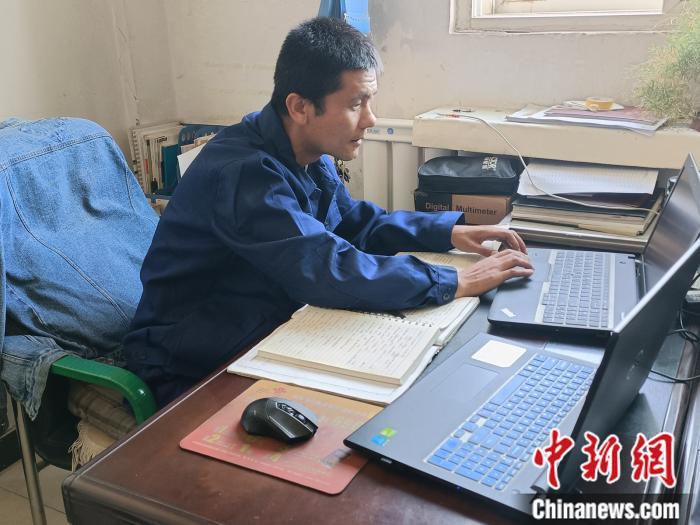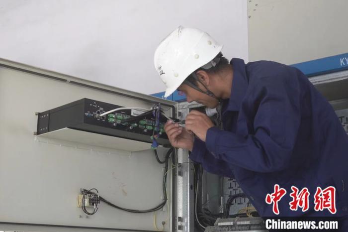 正在检修设备的陈志财。左雨晴 摄