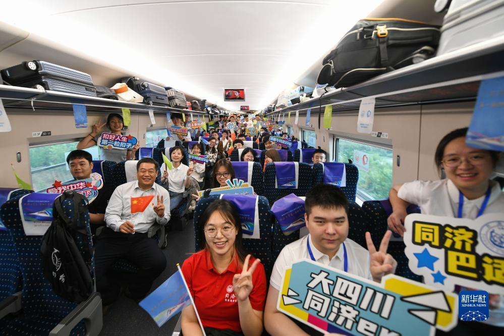 当日,四川省同济大学校友会和同济大学四川招生组联合中国铁路成都局集团有限公司,举行高铁“包车”活动,免费送同济大学150名2023级四川籍新生和他们的家长前往上海。