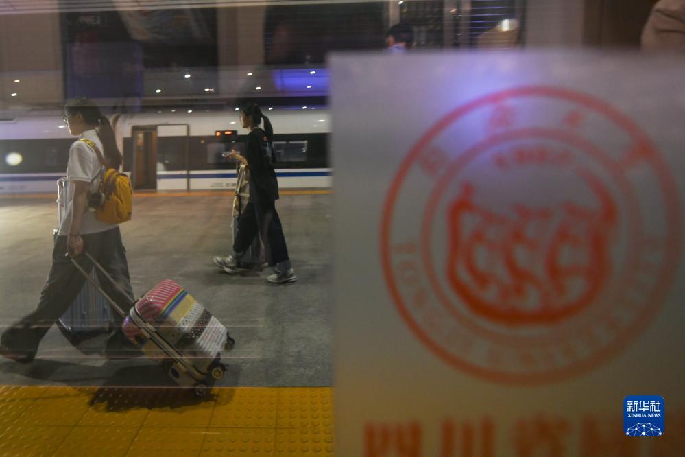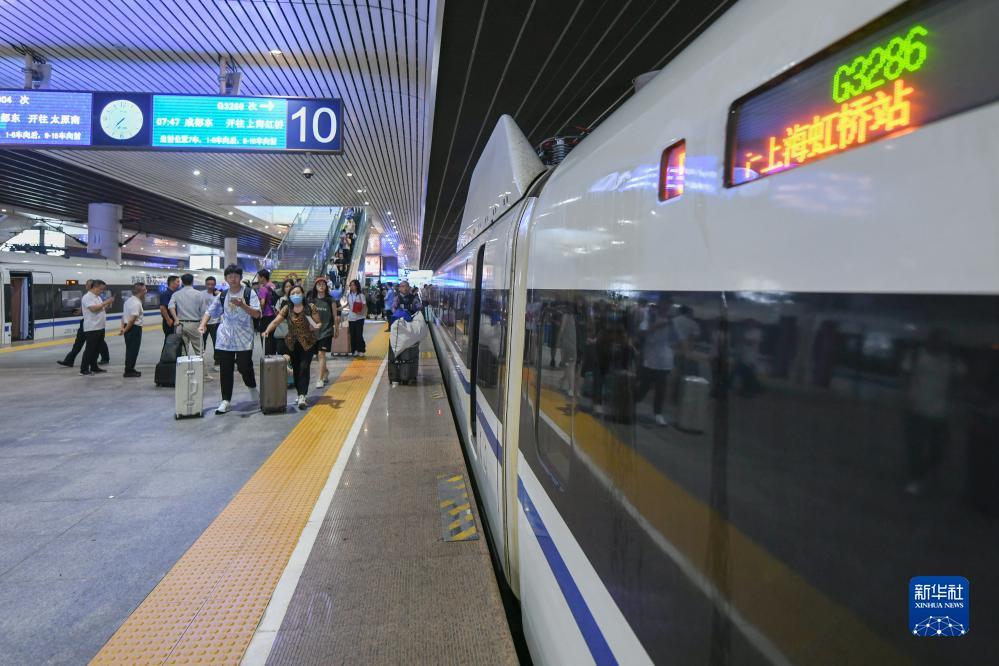 9月1日,在成都东站,同济大学2023级四川籍新生准备登车。