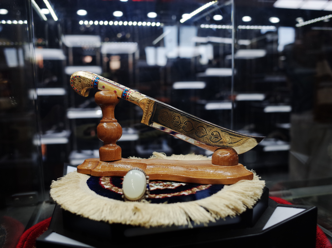 英吉沙小刀制作工艺讲究,既美观大方,又方便实用,作为新疆特色传统手工艺品,具有浓厚的民族风情,尤其是刀柄,被制成各种样式,或弯或直,质地有木质的、角质的、铜质的、银质的等,做工非常精美。由正宗传统工艺秘制而成的极品英吉沙小刀,钢色纯正、淬火精纯,其质感如同钢中美玉,百炼成钢、削铁如泥。