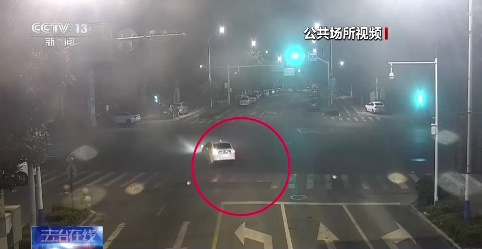 这是公共视频拍摄的画面,在经过一个路口的时候,一辆同向行驶的白色轿车就从一侧加速行驶,超越了岳某军的奔驰车。