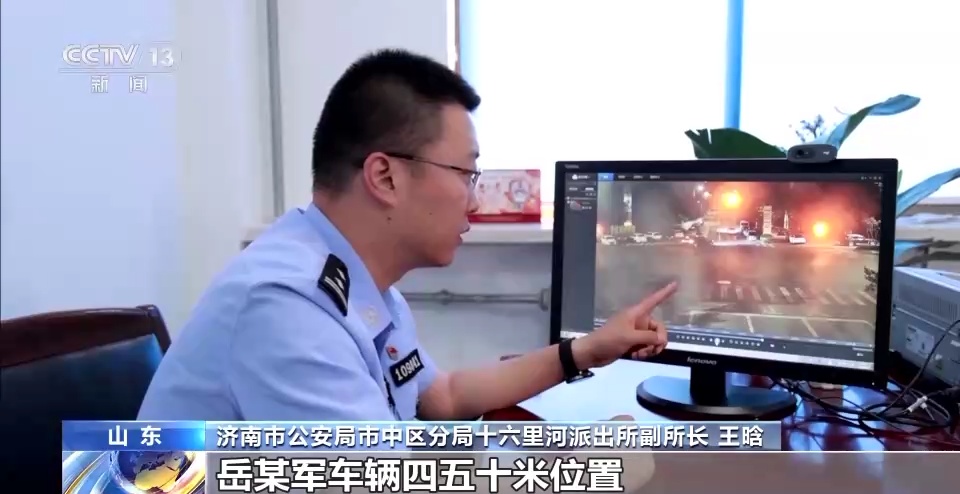 济南市公安局市中区分局十六里河派出所副所长 王晗:(岳某军)在车内休息期间,我们通过视频侦查发现,嫌疑人驾驶车辆在距离岳某军车辆四五十米位置,一直观察车辆的动向。
