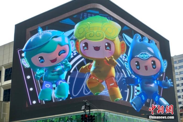 资料图:4月1日,亚运吉祥物裸眼3D宣传片在杭州市西湖区文三数字生活街区开播。中新社记者 钱晨菲 摄